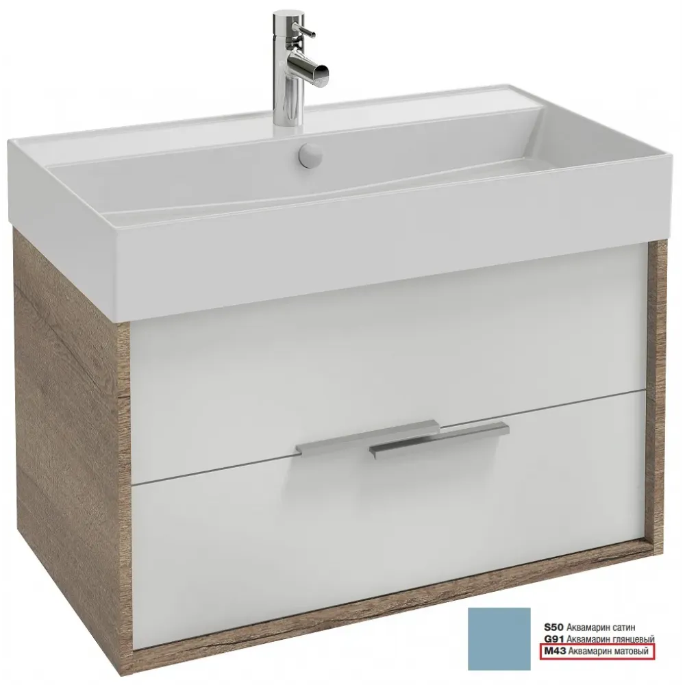 Модуль под раковину Vivienne 79,9х45,2х45,2 см, фасад аквамарин матовый, корпус дуб табак, ручки хром EB1507-E52-M43 Jacob Delafon