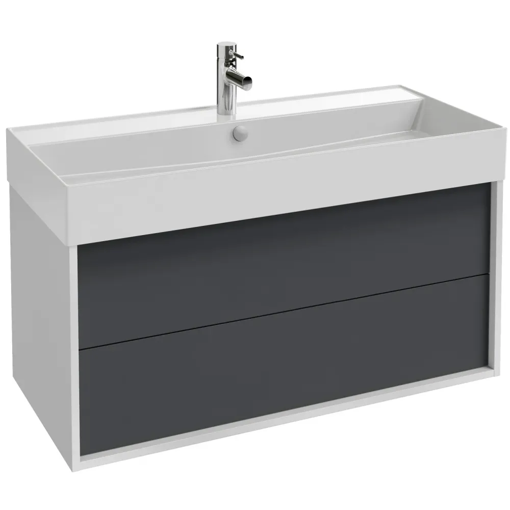 Vivienne 99,9х46х45,2см, модуль под раковину, корпус белый блестящий; фасад насыщенный серый сатин, ручки отдельно, арт. EB1585-N18-S40, Jacob Delafon