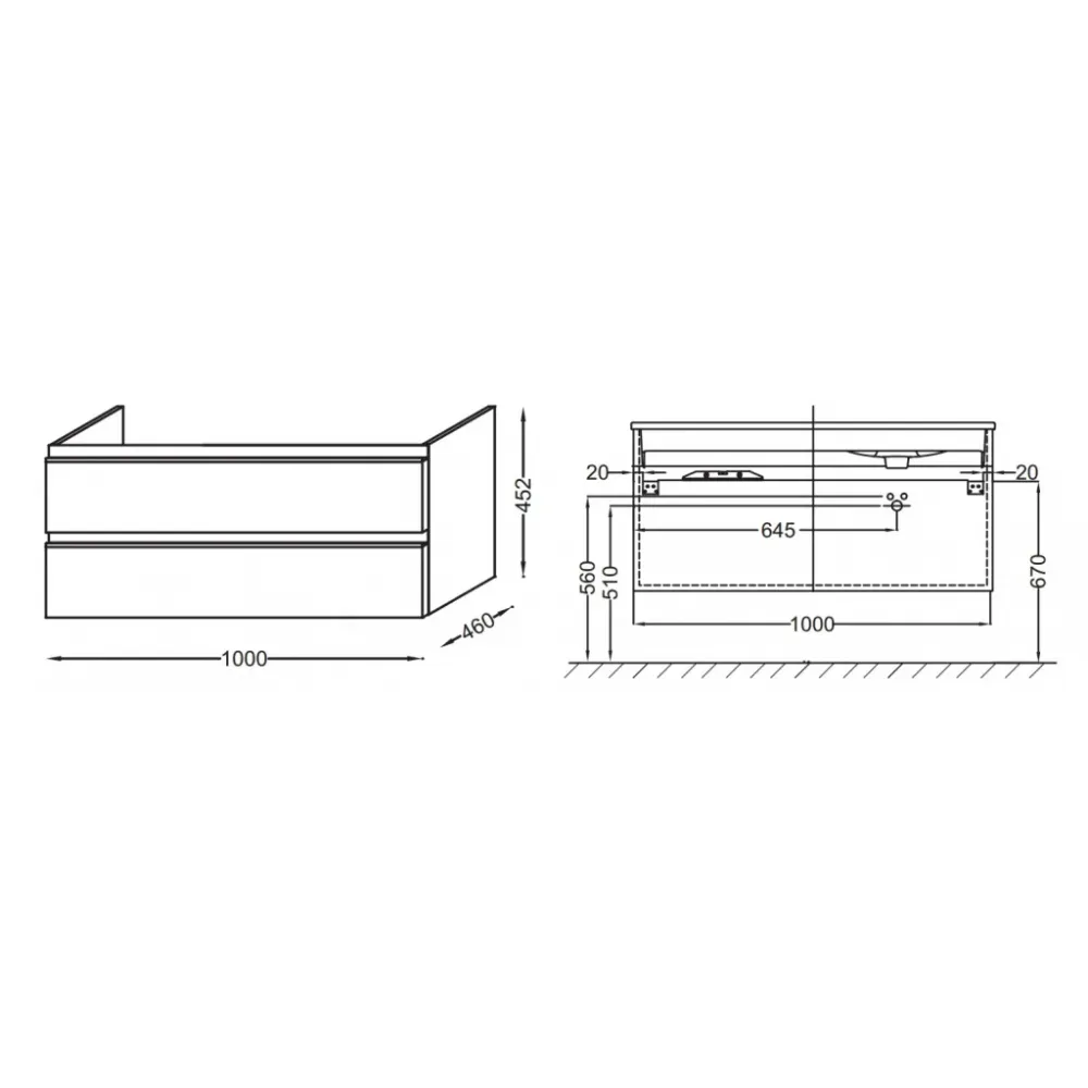 Технические характеристики Модуль под раковину Vox 100х46х45,2 см, белый блестящий, 2 ящика, изогнутые ручки EB2075-R1-N18 Jacob Delafon
