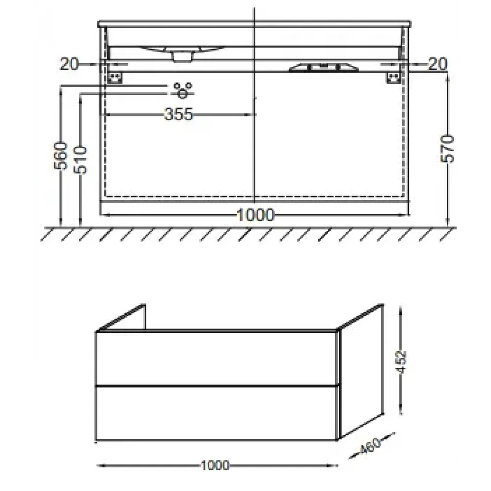 Технические характеристики Модуль под раковину Vox 100х46х45,2 см, белый блестящий, 2 ящика, под правостороннюю раковину, изогнутые ручки EB2076-R1-N18 Jacob Delafon