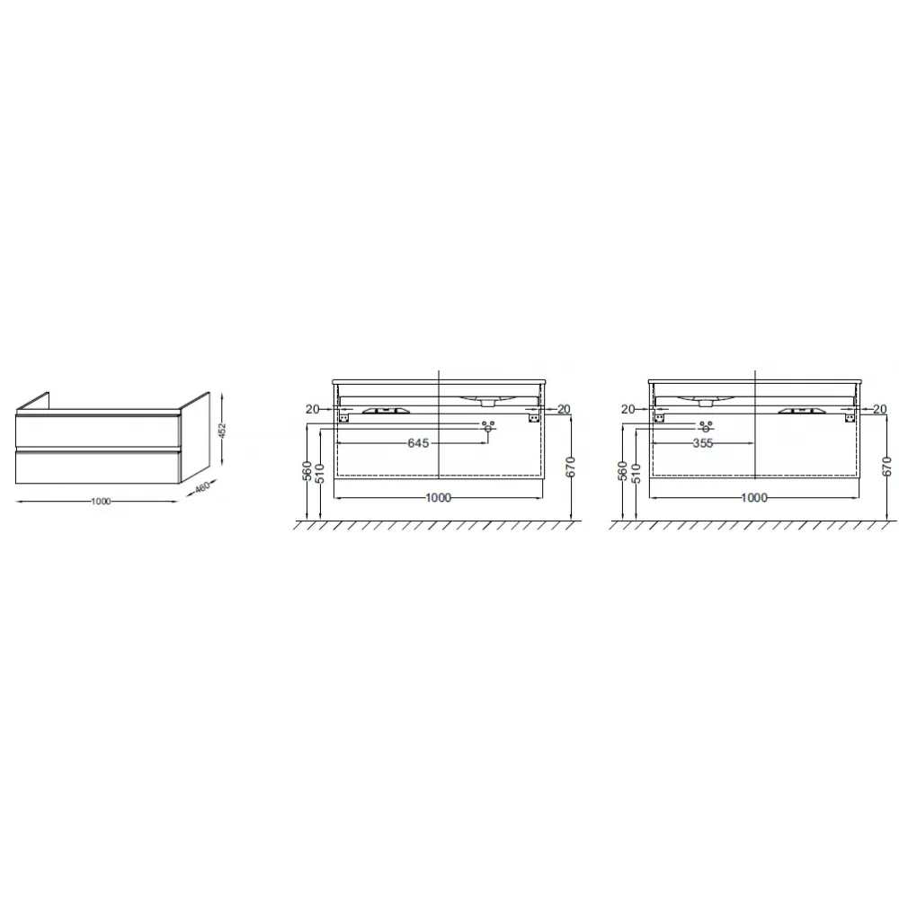 Технические характеристики Модуль под раковину Vox 100х46х45 см, белый блестящий, встроенные ручки, для левосторонней раковины, 2 выдвижных ящика EB2025-RA-N18 Jacob Delafon