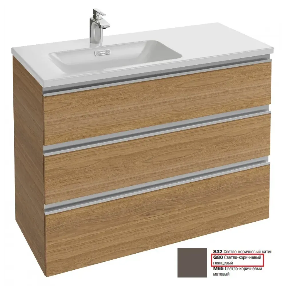 Модуль под раковину Vox 100х46х73,5 см, светло-коричневый блестящий, для левосторонней раковины, 3 выдвижных ящика, встроенные ручки EB2045-RA-G80 Jacob Delafon