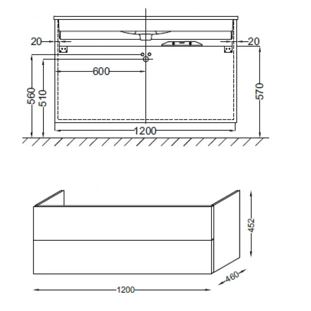 Технические характеристики Модуль под раковину Vox 120х45х46 см, белый блестящий лак, 2 ящика, встроенные ручки EB2021-RA-G1C Jacob Delafon