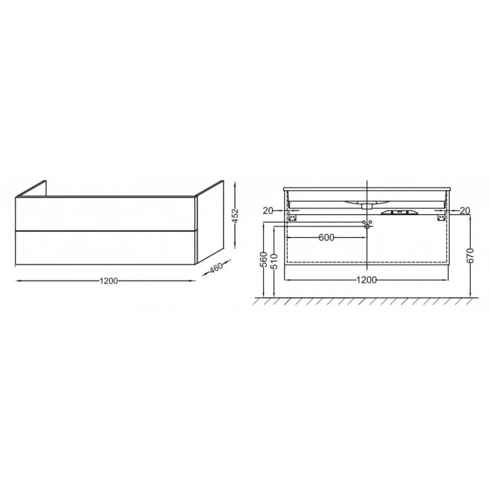 Технические характеристики Модуль под раковину Vox 120х46х45,2 см, белый блестящий, 2 ящика, изогнутые ручки EB2071-R1-N18 Jacob Delafon