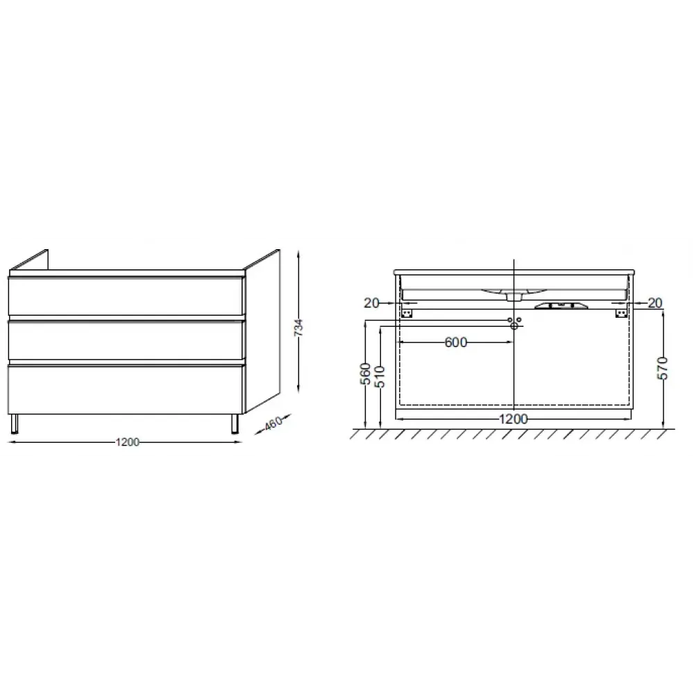 Технические характеристики Модуль под раковину Vox 120х46х73,4 см, светло-коричневый блестящий, с 3 выдвижными ящиками, встроенные ручки EB2041-RA-G80 Jacob Delafon