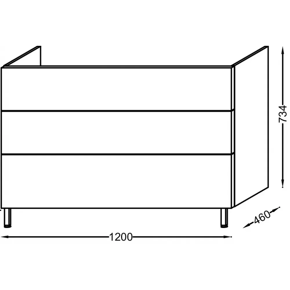 Технические характеристики Модуль под раковину Vox 120х73,4х46 см, 3 ящика, квебекский дуб, угловые ручки EB2091-R3-E10 Jacob Delafon