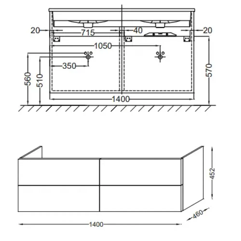 Устанавливается под раковину 140 см EXAA112-Z или EB2100.