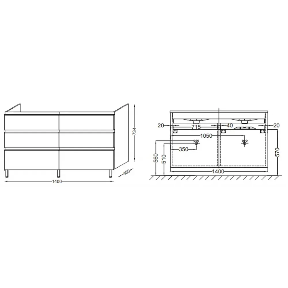 Устанавливается под раковину 140 см EXAA112-Z или EB2100.