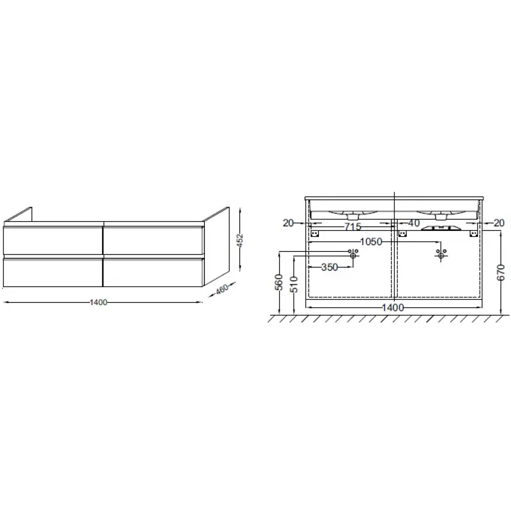 Технические характеристики Модуль под раковину Vox 140х46х45 см, серая кожа, 4 выдвижных ящика, встроенные ручки EB2020-RA-N29 Jacob Delafon