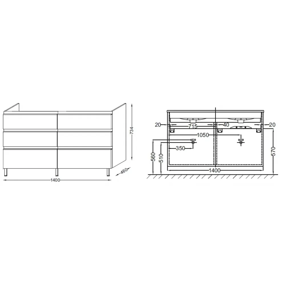 Технические характеристики Модуль под раковину Vox 140х46х73,4 см, 6 ящиков, голубой шторм глянцевый, угловые ручки EB2090-R3-G73 Jacob Delafon