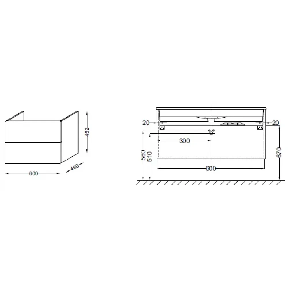 Технические характеристики Модуль под раковину Vox 60х46х45,2 см, черное дерево, изогнутая ручка, 2 выдвижных ящика EB2080-R1-E15 Jacob Delafon