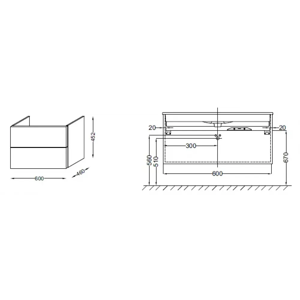 Технические характеристики Модуль под раковину Vox 60х46х45,2 см, матовый аквамарин, изогнутая ручка, 2 выдвижных ящика EB2080-R1-M43 Jacob Delafon