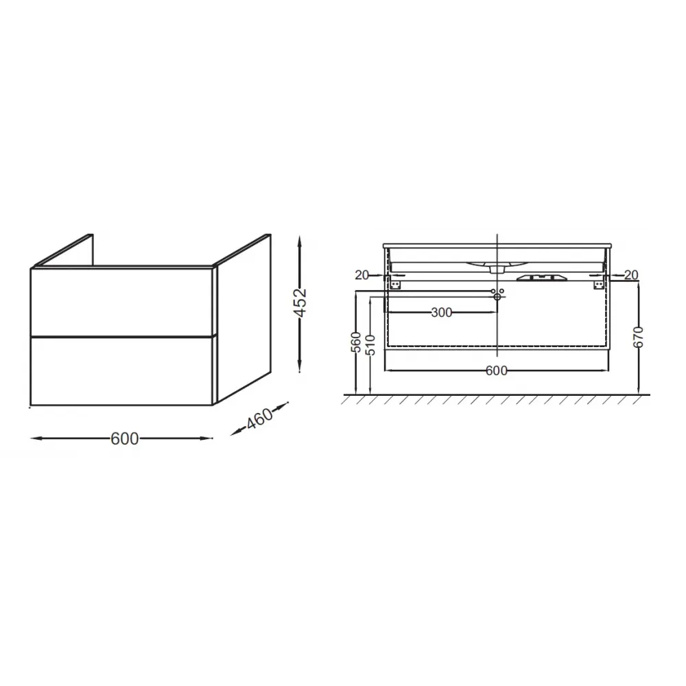 Технические характеристики Модуль под раковину Vox 60х46х45 см, белый блестящий, 2 ящика, прямая ручка EB2080-R4-N18 Jacob Delafon