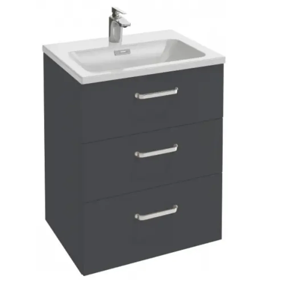 Модуль под раковину Vox 60х46х73,4 см, серый антрацит блестящий, с изогнутой ручкой, 3 выдвижных ящика EB3000-R1-442 Jacob Delafon