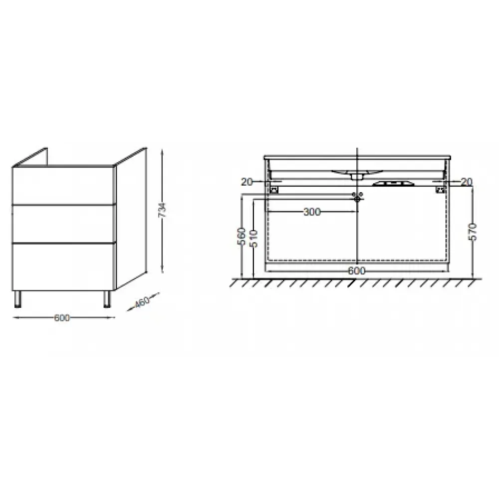 Технические характеристики Модуль под раковину Vox 60х46х73,4 см, серый антрацит блестящий, с изогнутой ручкой, 3 выдвижных ящика EB3000-R1-442 Jacob Delafon