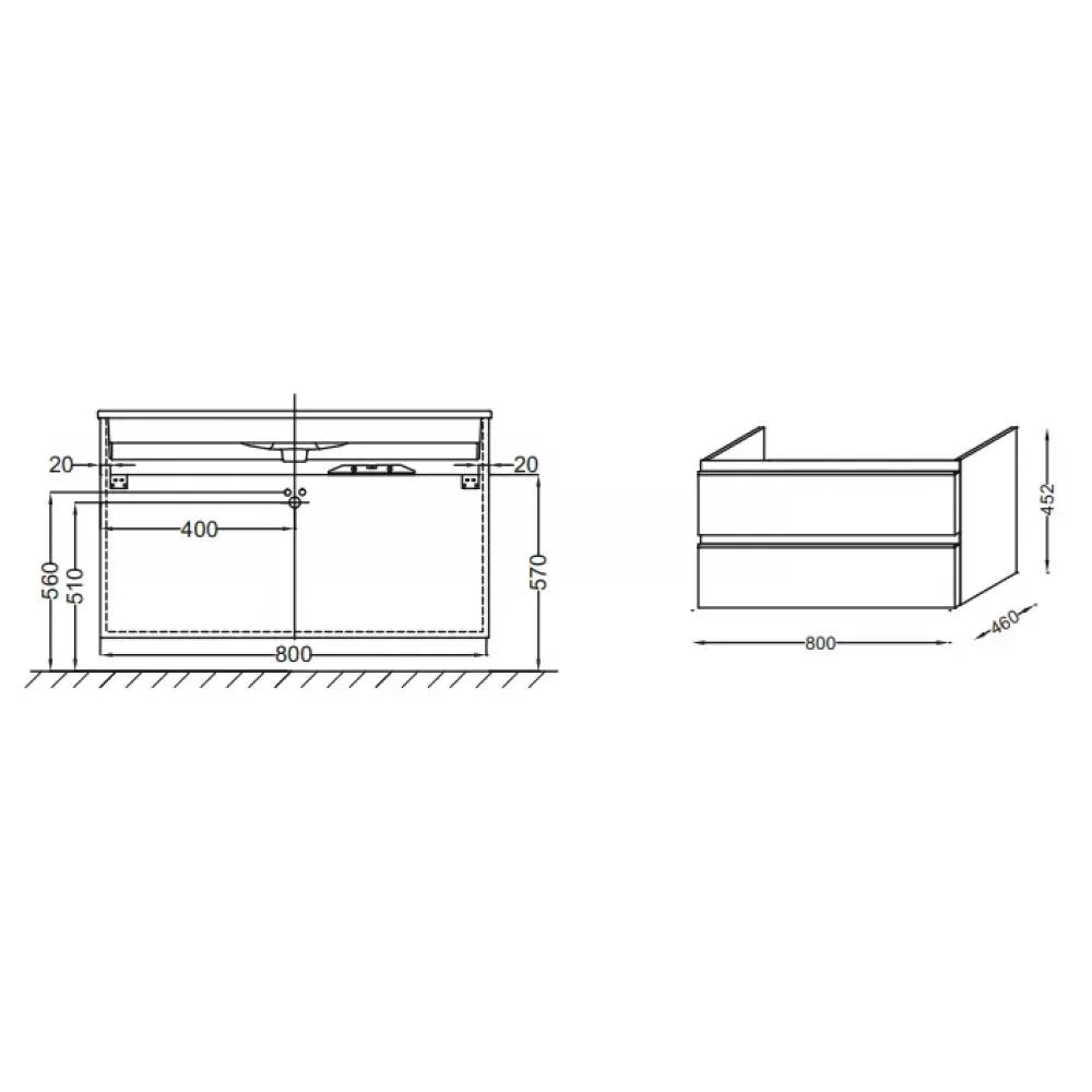 Технические характеристики Модуль под раковину Vox 80х46х45,2 см, ореховое дерево, 2 ящика, встроенные ручки EB2028-RA-E16 Jacob Delafon