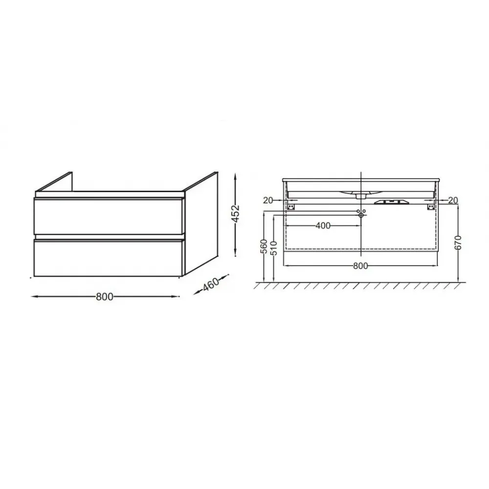 Технические характеристики Модуль под раковину Vox 80х46х45 см, белый блестящий, 2 ящика, встроенные ручки EB2028-RA-N18 Jacob Delafon