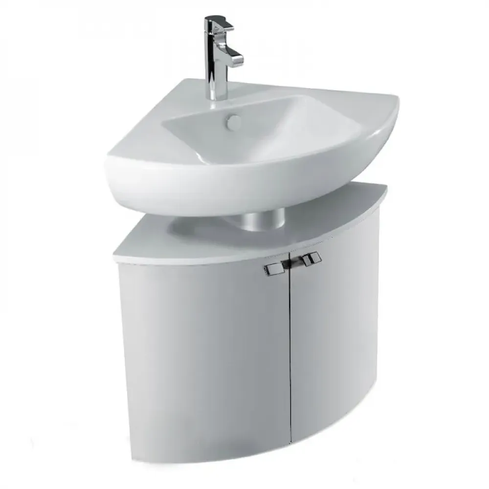 Модуль с раковиной Odeon Up 50 см, белый блестящий, с 2 дверцами, угловая, плавное закрывание, установка в угол, подвесной монтаж E4710-00+EB864-G1C Jacob Delafon
