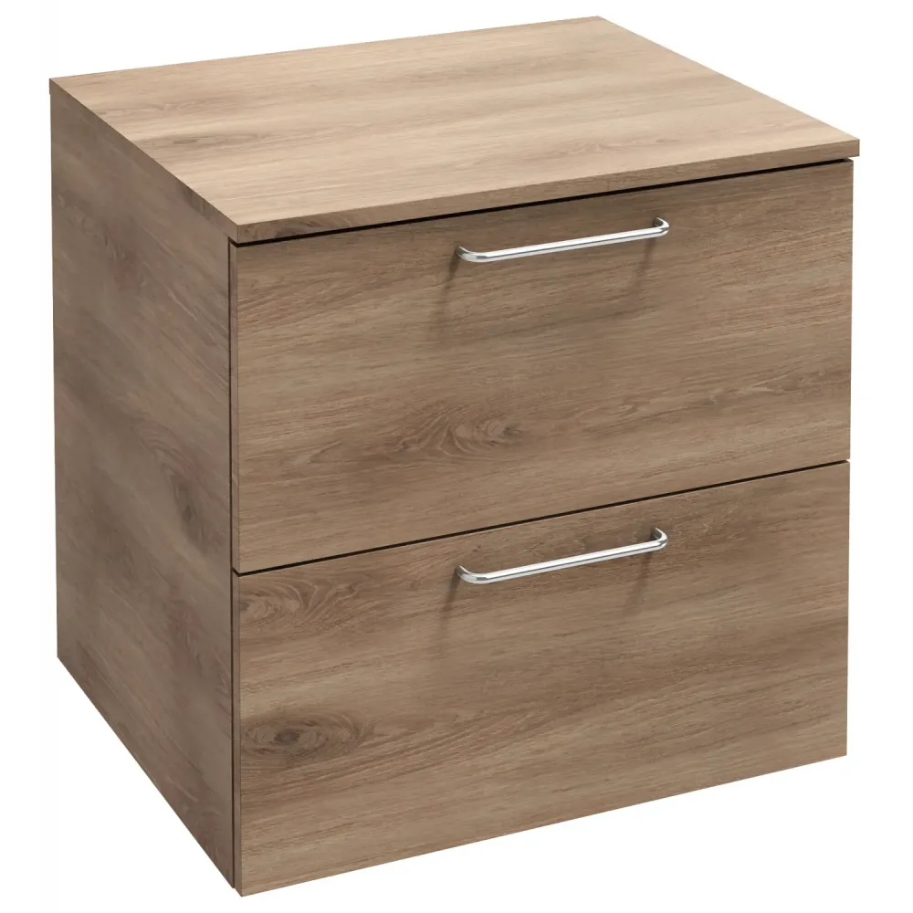Тумба для ванной Odeon Rive Gauche квебекский дуб, 2 ящика, ручки хром, подвесной монтаж 60х51,5 см EB2547-R5-E10 Jacob Delafon