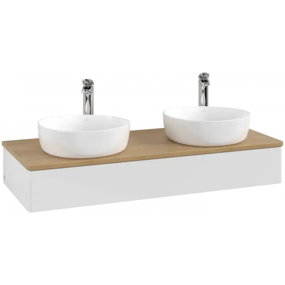 Villeroy & Boch Antao Тумба под раковину, 1 выдвижной ящик, 1200 x 190 x 500 mm, лицевая поверхность без текстурированной отделки, Glossy White Lacquer / Honey Oak K13051GF