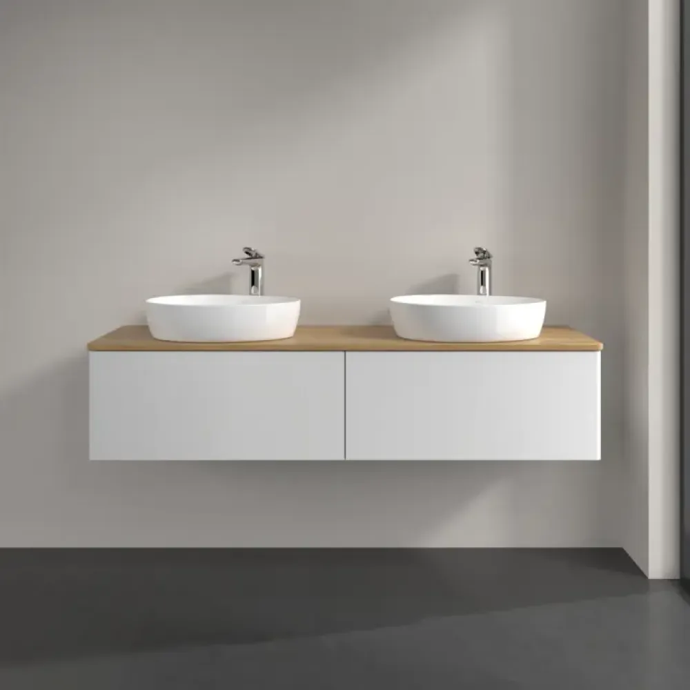 Villeroy & Boch Antao Тумба под раковину, 2 выдвижных ящика, 1600 x 360 x 500 mm, лицевая поверхность без текстурированной отделки, Glossy White Lacquer / Honey Oak