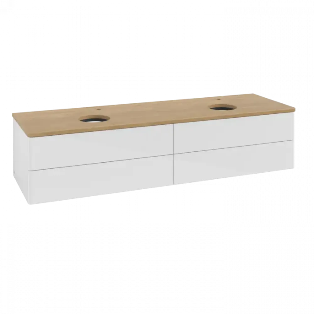 Villeroy & Boch Antao Тумба под раковину, 4 выдвижных ящика, 1600 x 360 x 500 mm, лицевая поверхность без текстурированной отделки, Glossy White Lacquer / Honey Oak