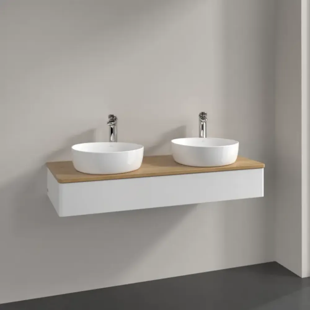Villeroy & Boch Antao Тумба под раковину, с подсветкой, 1 выдвижной ящик, 1200 x 190 x 500 mm, лицевая поверхность без текстурированной отделки, Glossy White Lacquer / Honey Oak