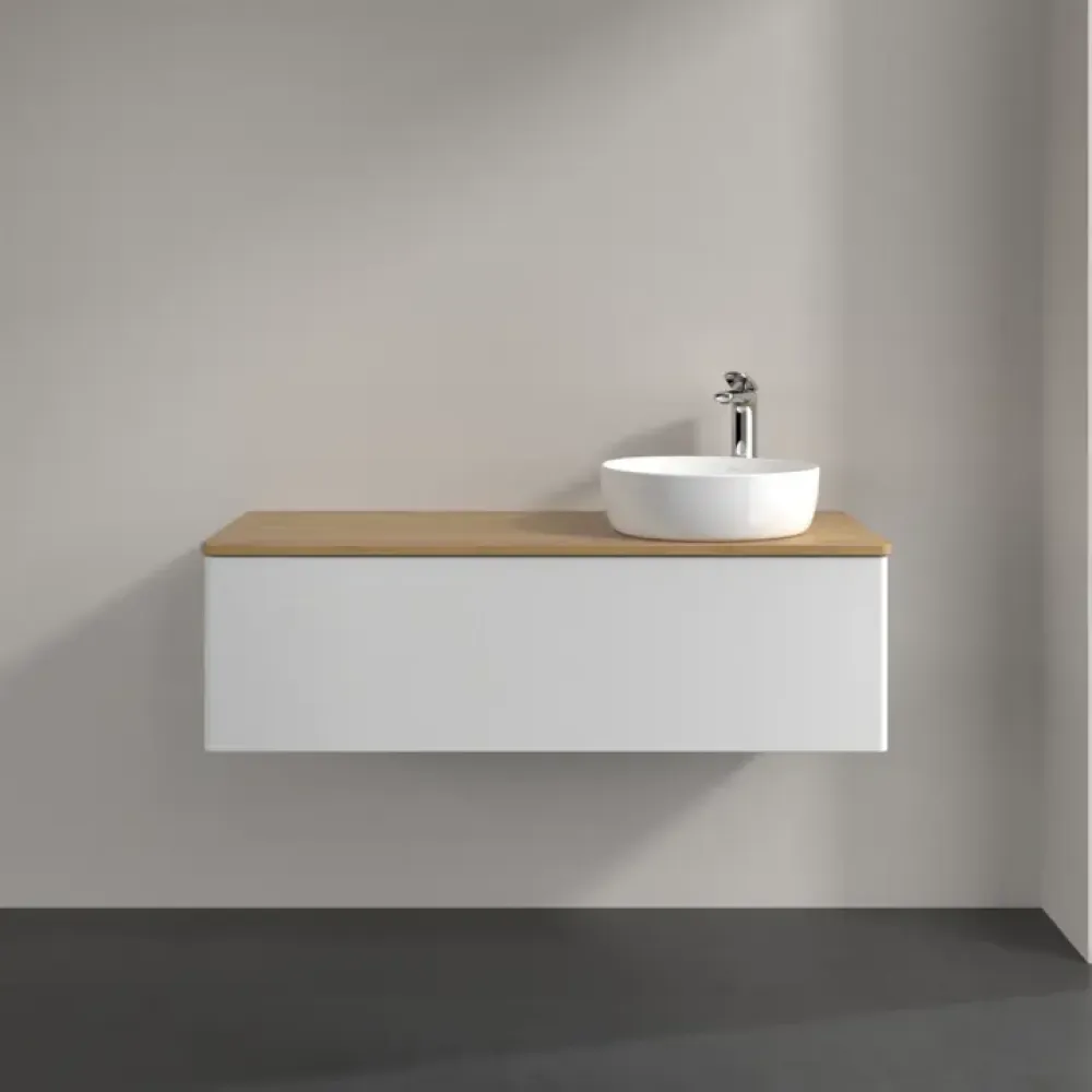 Villeroy & Boch Antao Тумба под раковину, с подсветкой, 1 выдвижной ящик, 1200 x 360 x 500 mm, лицевая поверхность без текстурированной отделки, Glossy White Lacquer / Honey Oak
