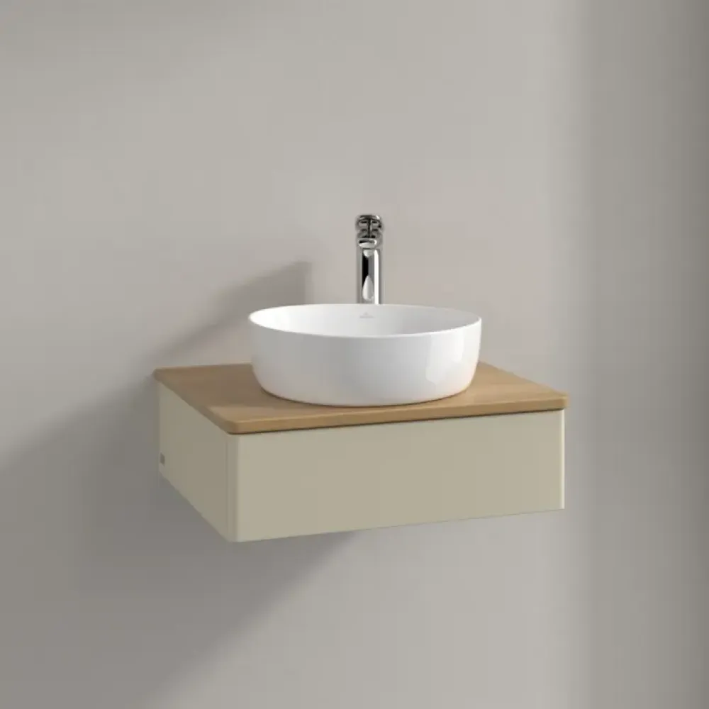 Villeroy & Boch Antao Тумба под раковину, с подсветкой, 1 выдвижной ящик, 600 x 190 x 500 mm, лицевая поверхность без текстурированной отделки, Silk Grey Matt Lacquer / Honey Oak