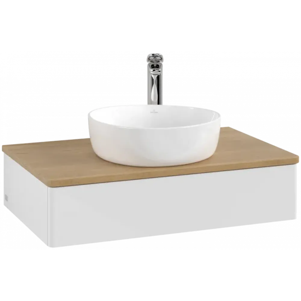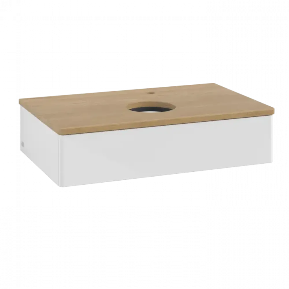 Villeroy & Boch Antao Тумба под раковину, с подсветкой, 1 выдвижной ящик, 800 x 190 x 500 mm, лицевая поверхность без текстурированной отделки, Glossy White Lacquer / Honey Oak