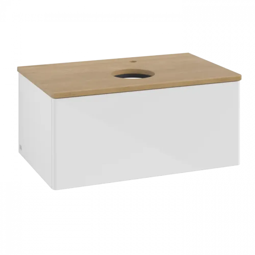 Villeroy & Boch Antao Тумба под раковину, с подсветкой, 1 выдвижной ящик, 800 x 360 x 500 mm, лицевая поверхность без текстурированной отделки, Glossy White Lacquer / Honey Oak