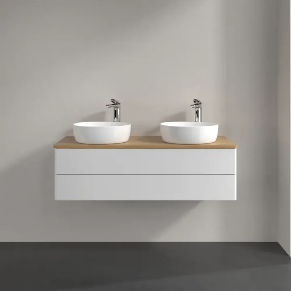 Villeroy & Boch Antao Тумба под раковину, с подсветкой, 2 выдвижных ящика, 1200 x 360 x 500 mm, лицевая поверхность без текстурированной отделки, Glossy White Lacquer / Honey Oak
