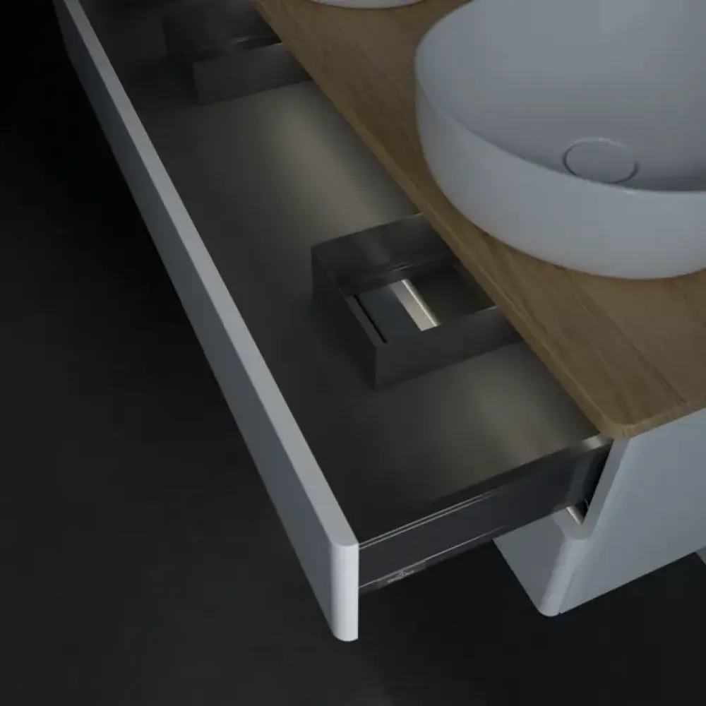 | Оснащение | 2 компактных сифона, 2 внутренние подсветки выдвижных ящиков 2 выдвижных ящика с антискользящим дном |