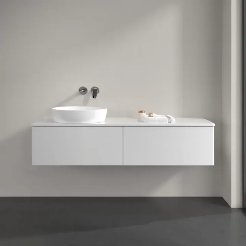 Villeroy & Boch Antao Тумба под раковину, с подсветкой, 2 выдвижных ящика, 1600 x 360 x 500 mm, лицевая поверхность без текстурированной отделки, Glossy White Lacquer / Glossy White Lacquer