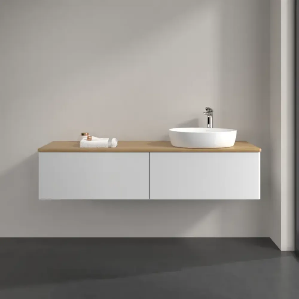 Villeroy & Boch Antao Тумба под раковину, с подсветкой, 2 выдвижных ящика, 1600 x 360 x 500 mm, лицевая поверхность без текстурированной отделки, Glossy White Lacquer / Honey Oak