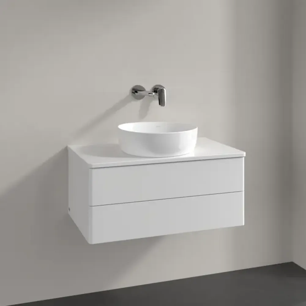Villeroy & Boch Antao Тумба под раковину, с подсветкой, 2 выдвижных ящика, 800 x 360 x 500 mm, лицевая поверхность без текстурированной отделки, Glossy White Lacquer / Glossy White Lacquer