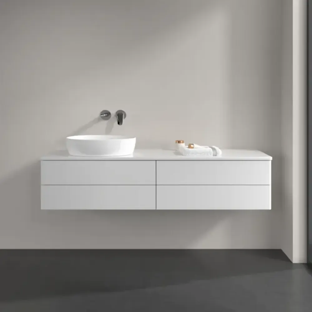 Villeroy & Boch Antao Тумба под раковину, с подсветкой, 4 выдвижных ящика, 1600 x 360 x 500 mm, лицевая поверхность без текстурированной отделки, Glossy White Lacquer / Glossy White Lacquer