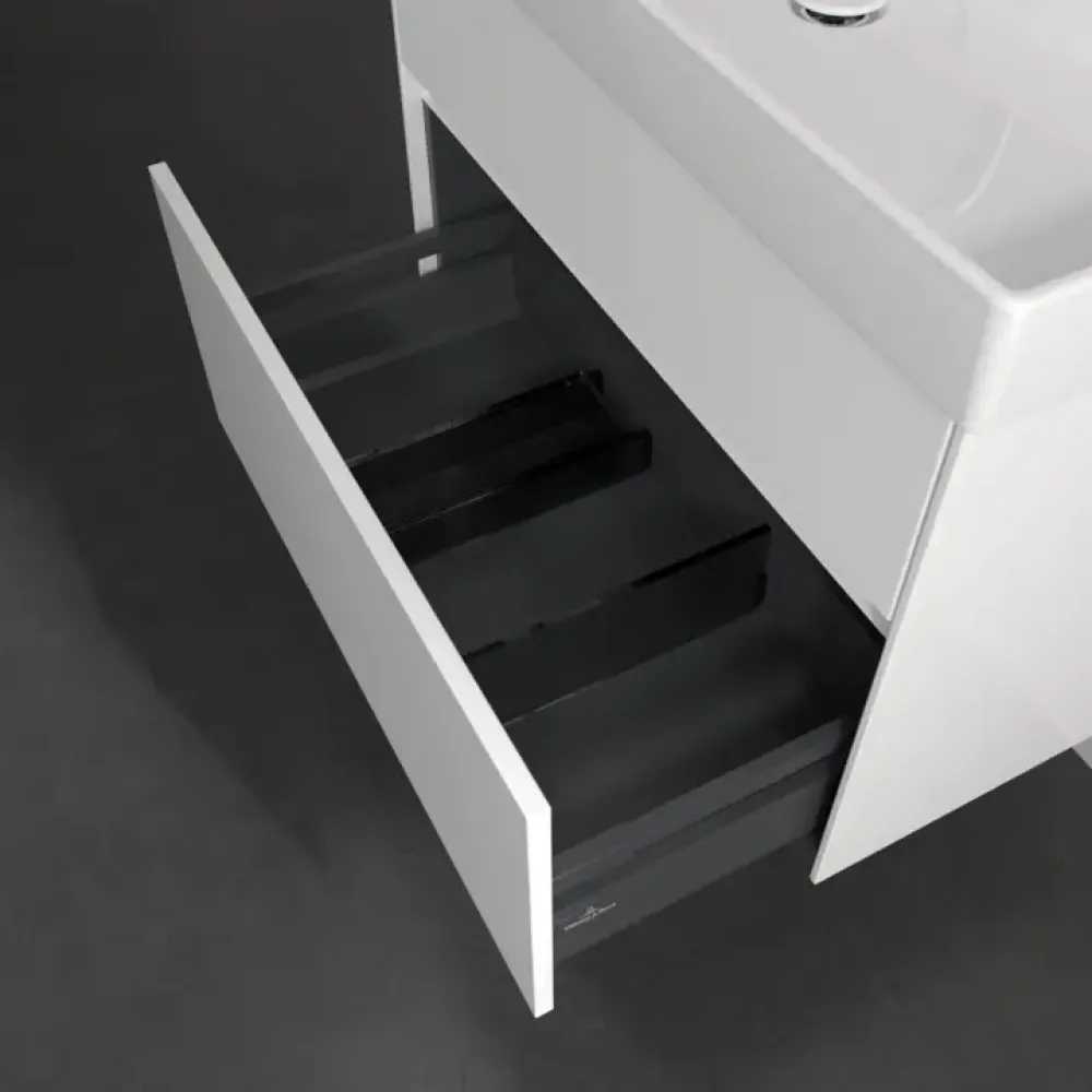 Продуманное внутреннее разделение мебели для ванной Villeroy & Boch позволяет создать индивидуальную систему организации пространства в ванной комнате. Элементы, расположение которых можно менять, например регулируемые стеклянные перегородки и контейнеры для аксессуаров различных размеров, обеспечивают хороший обзор и порядок. Благодаря практичной системе внутреннего разделения вы будете быстро находить принадлежности для ванной, которыми вы постоянно пользуетесь.