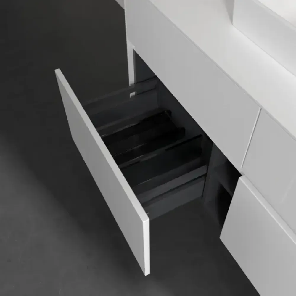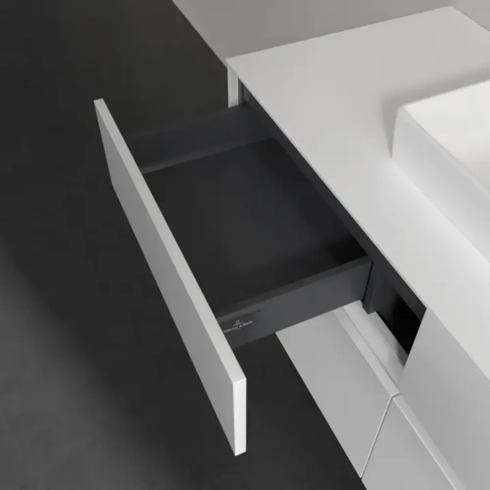 Продуманное внутреннее разделение мебели для ванной Villeroy & Boch позволяет создать индивидуальную систему организации пространства в ванной комнате. Элементы, расположение которых можно менять, например регулируемые стеклянные перегородки и контейнеры для аксессуаров различных размеров, обеспечивают хороший обзор и порядок. Благодаря практичной системе внутреннего разделения вы будете быстро находить принадлежности для ванной, которыми вы постоянно пользуетесь.