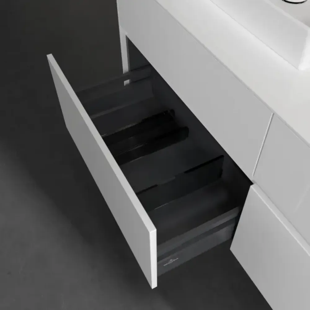 Продуманное внутреннее разделение мебели для ванной Villeroy & Boch позволяет создать индивидуальную систему организации пространства в ванной комнате. Элементы, расположение которых можно менять, например регулируемые стеклянные перегородки и контейнеры для аксессуаров различных размеров, обеспечивают хороший обзор и порядок. Благодаря практичной системе внутреннего разделения вы будете быстро находить принадлежности для ванной, которыми вы постоянно пользуетесь.