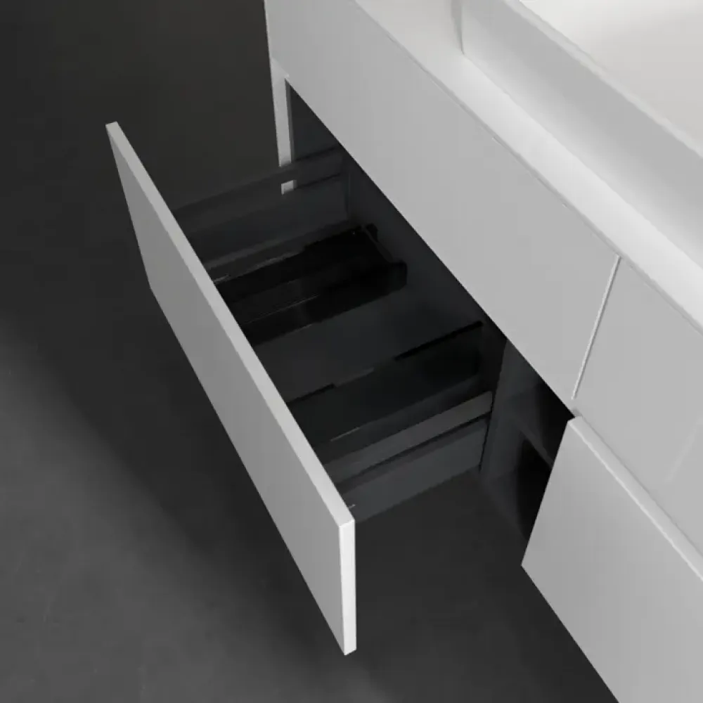 Продуманное внутреннее разделение мебели для ванной Villeroy & Boch позволяет создать индивидуальную систему организации пространства в ванной комнате. Элементы, расположение которых можно менять, например регулируемые стеклянные перегородки и контейнеры для аксессуаров различных размеров, обеспечивают хороший обзор и порядок. Благодаря практичной системе внутреннего разделения вы будете быстро находить принадлежности для ванной, которыми вы постоянно пользуетесь.