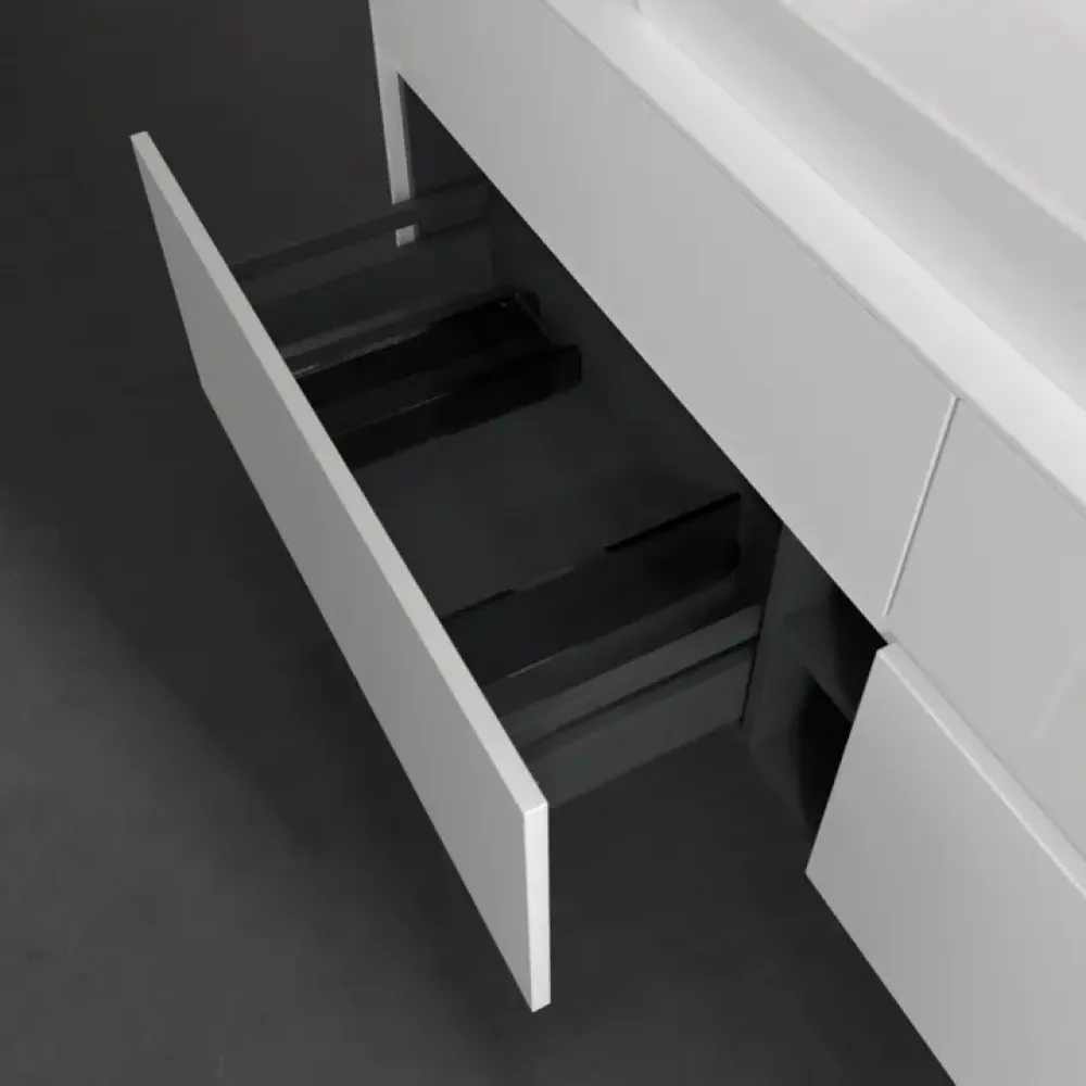 Продуманное внутреннее разделение мебели для ванной Villeroy & Boch позволяет создать индивидуальную систему организации пространства в ванной комнате. Элементы, расположение которых можно менять, например регулируемые стеклянные перегородки и контейнеры для аксессуаров различных размеров, обеспечивают хороший обзор и порядок. Благодаря практичной системе внутреннего разделения вы будете быстро находить принадлежности для ванной, которыми вы постоянно пользуетесь.