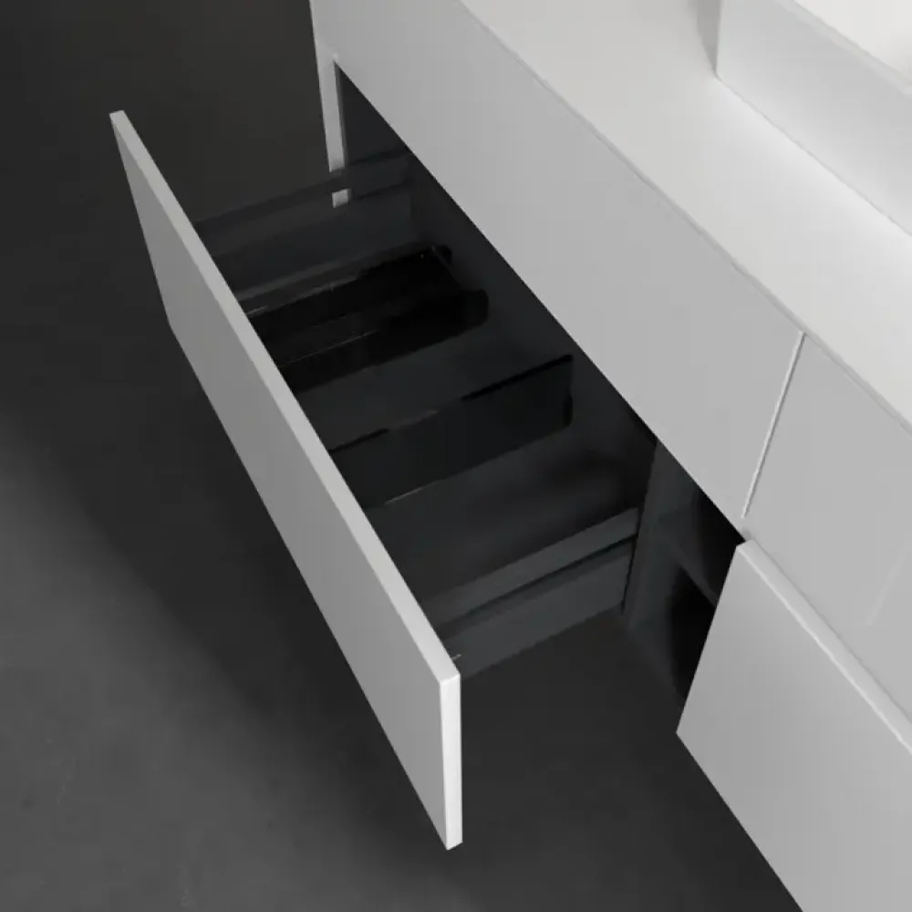 Продуманное внутреннее разделение мебели для ванной Villeroy & Boch позволяет создать индивидуальную систему организации пространства в ванной комнате. Элементы, расположение которых можно менять, например регулируемые стеклянные перегородки и контейнеры для аксессуаров различных размеров, обеспечивают хороший обзор и порядок. Благодаря практичной системе внутреннего разделения вы будете быстро находить принадлежности для ванной, которыми вы постоянно пользуетесь.