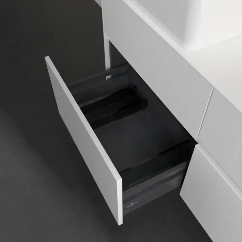 Продуманное внутреннее разделение мебели для ванной Villeroy & Boch позволяет создать индивидуальную систему организации пространства в ванной комнате. Элементы, расположение которых можно менять, например регулируемые стеклянные перегородки и контейнеры для аксессуаров различных размеров, обеспечивают хороший обзор и порядок. Благодаря практичной системе внутреннего разделения вы будете быстро находить принадлежности для ванной, которыми вы постоянно пользуетесь.