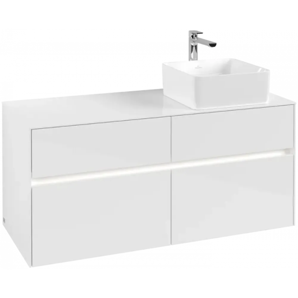 Villeroy & Boch Collaro Тумба под раковину, с подсветкой, 4 выдвижных ящика, 1200 x 548 x 500 mm, Glossy White / Glossy White