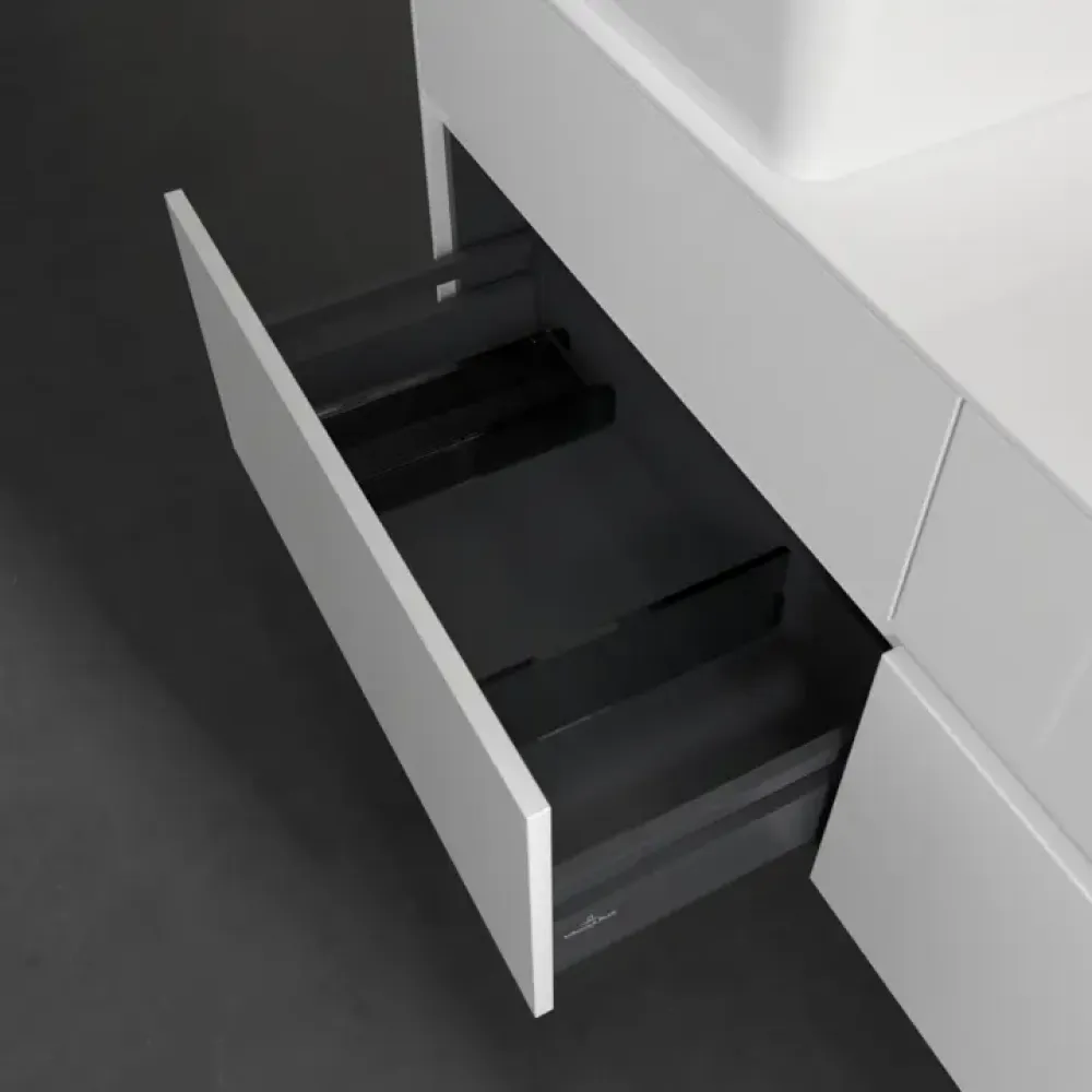 Продуманное внутреннее разделение мебели для ванной Villeroy & Boch позволяет создать индивидуальную систему организации пространства в ванной комнате. Элементы, расположение которых можно менять, например регулируемые стеклянные перегородки и контейнеры для аксессуаров различных размеров, обеспечивают хороший обзор и порядок. Благодаря практичной системе внутреннего разделения вы будете быстро находить принадлежности для ванной, которыми вы постоянно пользуетесь.