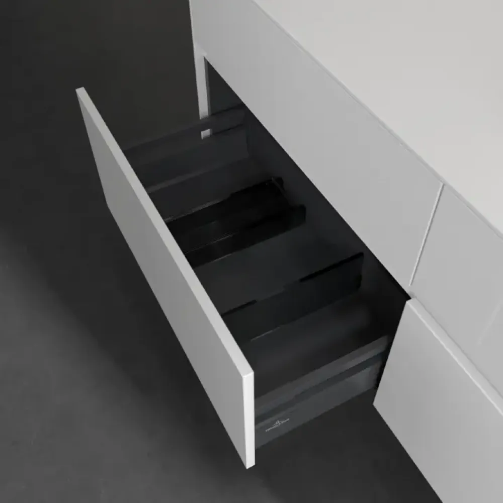 Продуманное внутреннее разделение мебели для ванной Villeroy & Boch позволяет создать индивидуальную систему организации пространства в ванной комнате. Элементы, расположение которых можно менять, например регулируемые стеклянные перегородки и контейнеры для аксессуаров различных размеров, обеспечивают хороший обзор и порядок. Благодаря практичной системе внутреннего разделения вы будете быстро находить принадлежности для ванной, которыми вы постоянно пользуетесь.