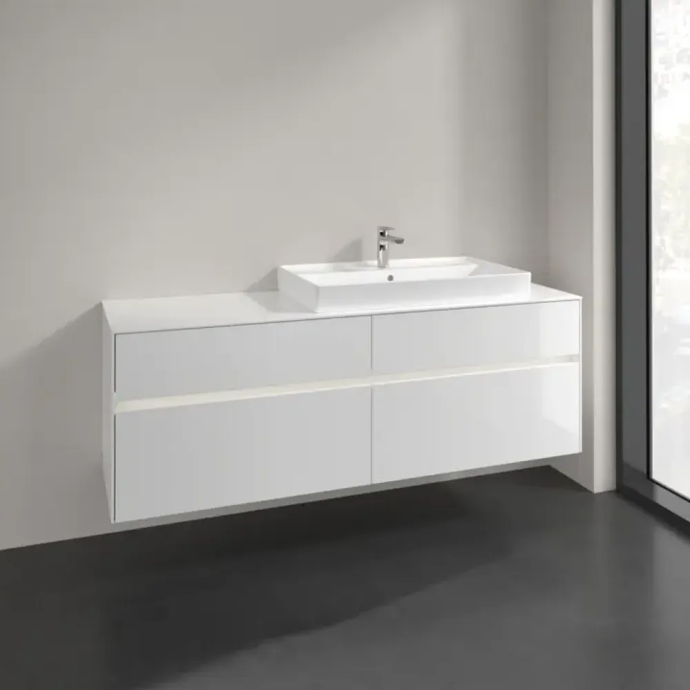 Villeroy & Boch Collaro Тумба под раковину, с подсветкой, 4 выдвижных ящика, 1600 x 548 x 500 mm, Glossy White / Glossy White