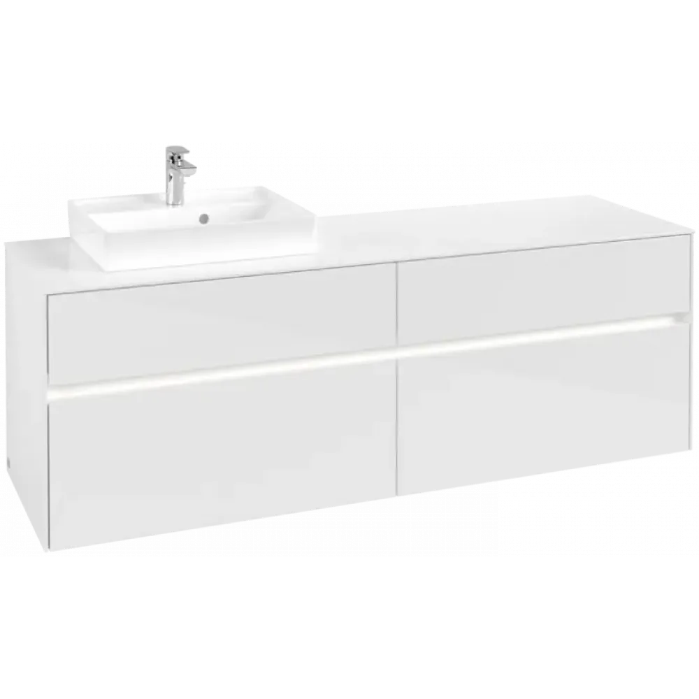 Villeroy & Boch Collaro Тумба под раковину, с подсветкой, 4 выдвижных ящика, 1600 x 548 x 500 mm, Glossy White / Glossy White