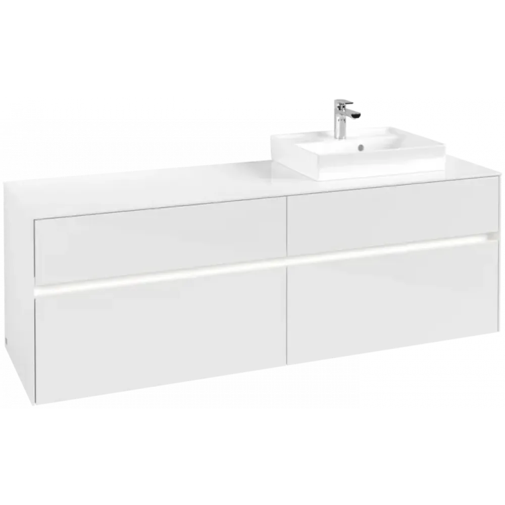 Villeroy & Boch Collaro Тумба под раковину, с подсветкой, 4 выдвижных ящика, 1600 x 548 x 500 mm, Glossy White / Glossy White